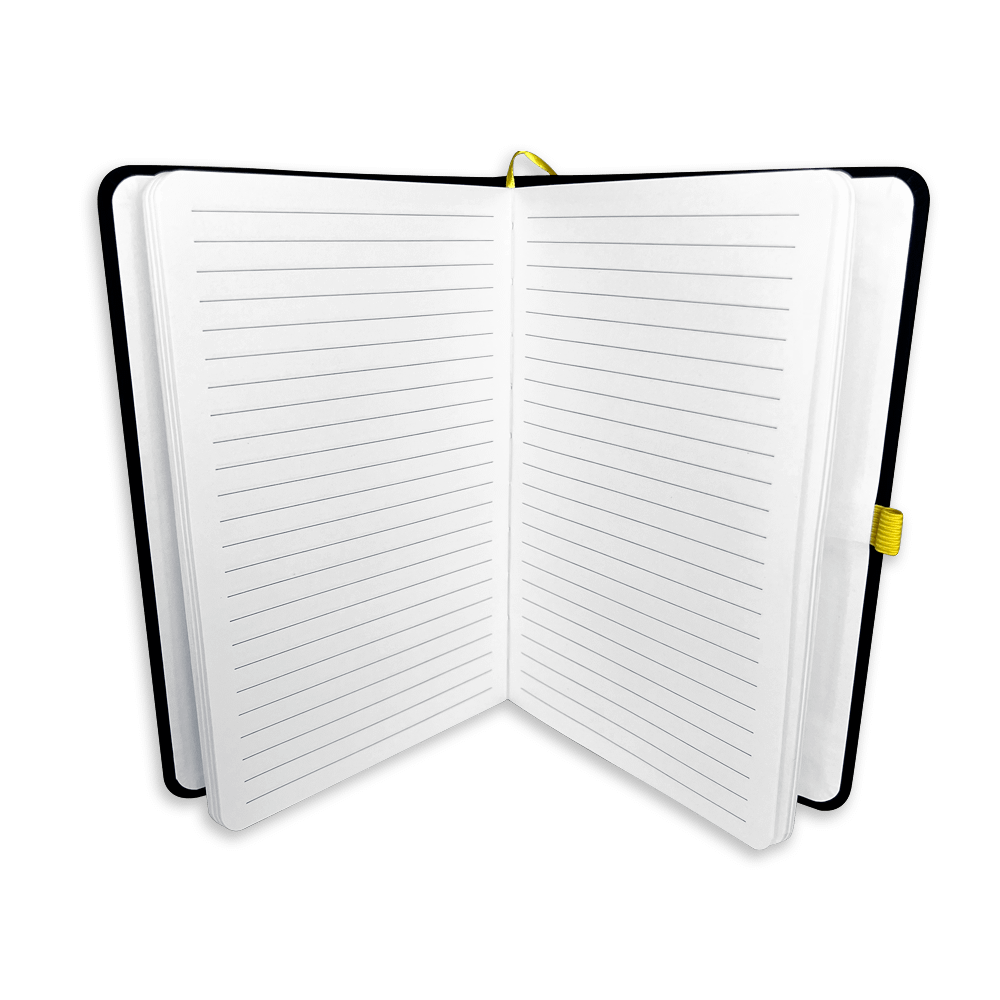 For added functionality, the notebook has a yellow elastic band to keep your pen securely in place and a yellow ribbon marker so you can easily find your most important notes.